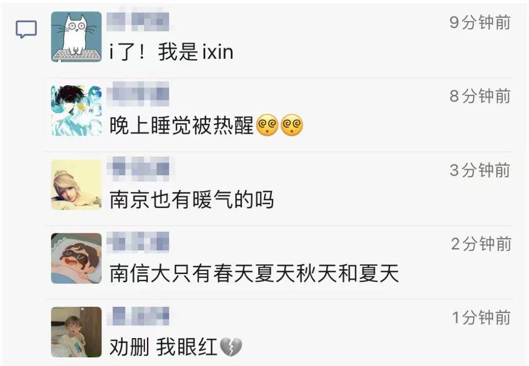 暖气一开,南信大人的朋友圈也热闹非凡。有人发文说:"哎!晚上穿短袖睡觉被热醒!"没有暖气的亲友只能"眼红羡慕"。