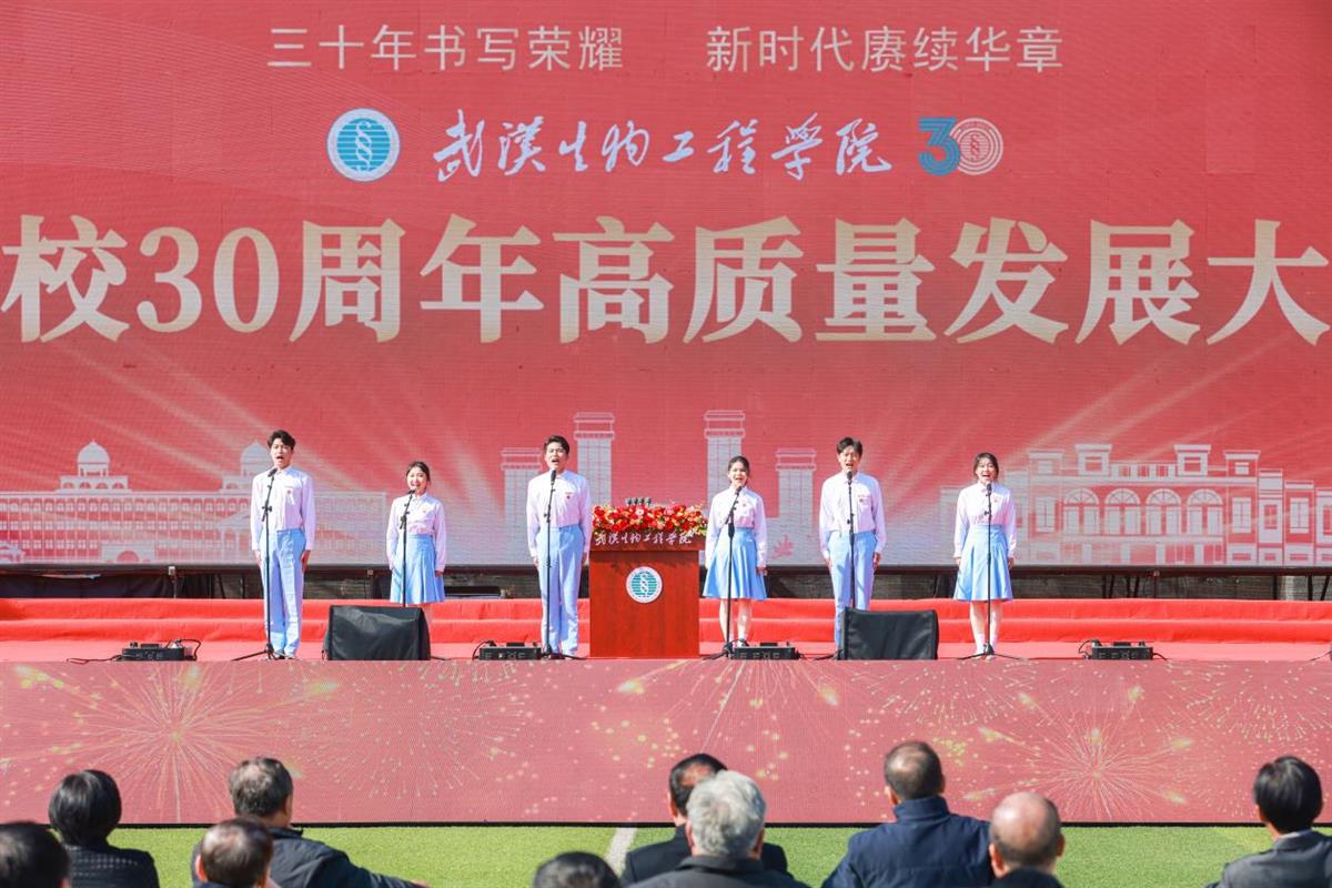 11月28日上午,武汉生物工程学院在晨光体育场隆重举行庆祝建校30周年高质量发展大会。各界嘉宾、社会友好,广大校友、师生员工欢聚一堂,共同重温学校抢抓机遇、自立自强、锐意进取、创新创业的30年奋斗历程,共同擘画学校未来美好发展蓝图。