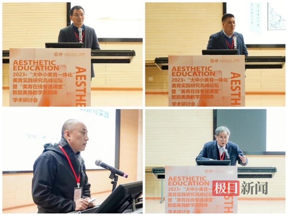 11月25日,2023年全国“大中小美育一体化”美育实践研究高峰论坛暨“美育在线专递课堂”智能美育教学共同体学术研讨会在湖北第二师范学院举行。来自全国各地的专家学者,高校和中小学的教学管理者、一线教师等50余人齐聚一堂共话美育,积极探索美育教育的新思路、新视角和新成果。