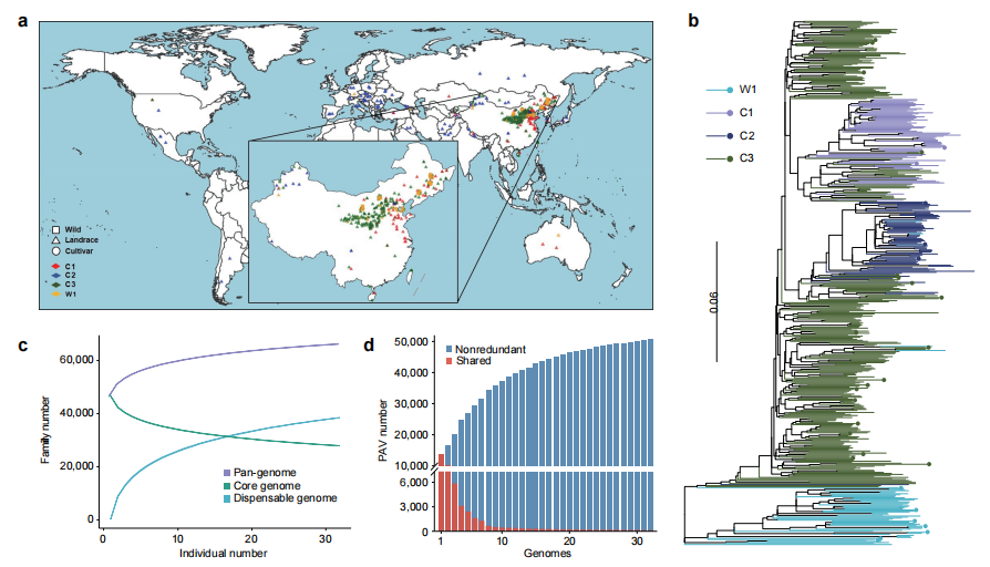 2023年12月1日,《自然·遗传学》(NatureGenetics)发表了中国农业科学院作物科学研究所刁现民研究团队的最新成果。研究构建了黍稷(也称糜子、黍子、大黄米)第一个高质量泛基因组和遗传变异图谱,系统性解析了黍稷品种资源的群体结构、起源演化历史与基因组驯化特征。