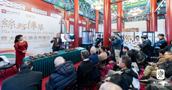 2023年11月5日下午,“丝路传琴——意大利古典名琴展览”作为中意国际音乐节首个重要活动,在央音王府南大殿拉开了帷幕。中国文联党组成员、副主席、书记处书记、中国音乐家协会副主席、中央音乐学院校长俞峰教授首先在展览开幕式中致辞。其后,意大利克雷莫纳小提琴博物馆主席PaoloBodini先生以及提琴制作研究中心主任高彤彤教授相继致辞;意大利提琴制作大师、提琴文化专家、提琴收藏专家、提琴制作研究中心全体师生以及各相关单位的代表出席了开幕式。到场嘉宾与俞峰校长、意大利驻华使馆文化中心主任、文化参赞FedericoRobertoAntonelli先生以及高彤彤教授共同为名琴展览开幕式剪彩。