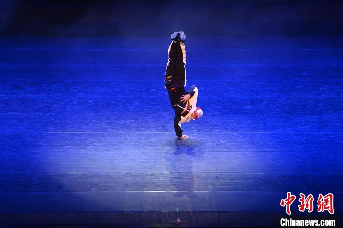 12月4日晚,广东广州,舞者杨凯在中山大学表演街舞《霹雳前行》。陈楚红摄