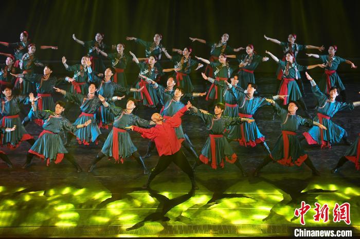 12月4日晚,广东广州,舞者李德戈景(红衣)在中山大学表演蒙古族舞《雄鹰》。陈楚红摄
