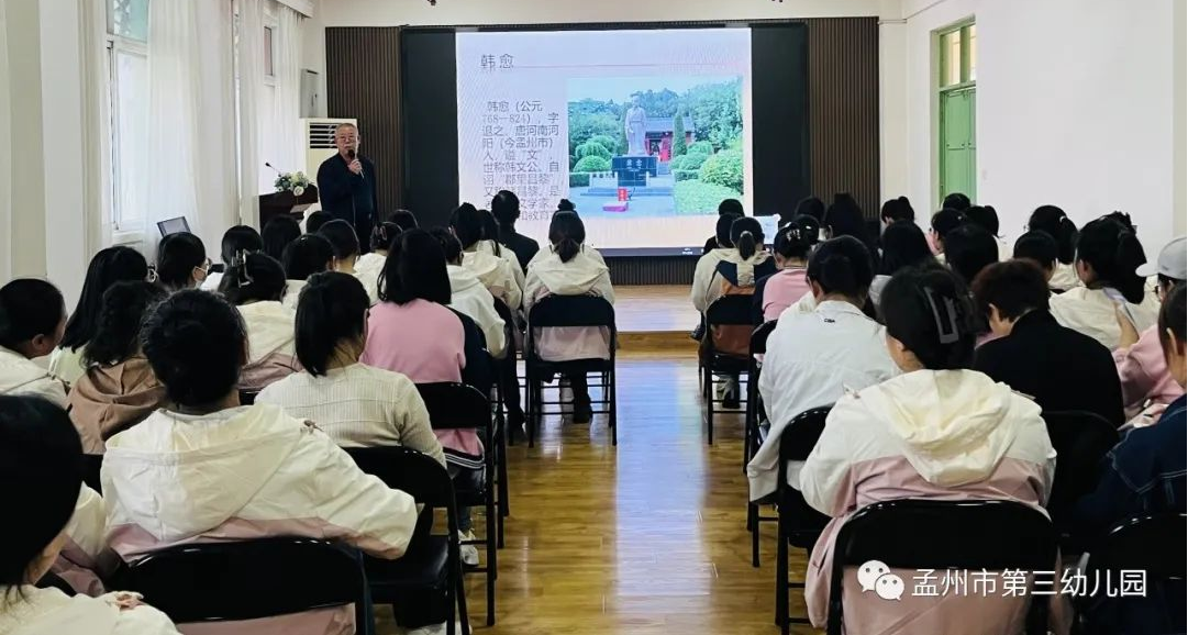 现场,孟州市韩愈研究会会长刘群为全体教职工开展《书香孟州读懂韩愈》专题讲座,老师们在深入了解韩愈的生平、代表作和主要思想的同时,也深刻领悟了韩愈的人格特点和历史贡献。