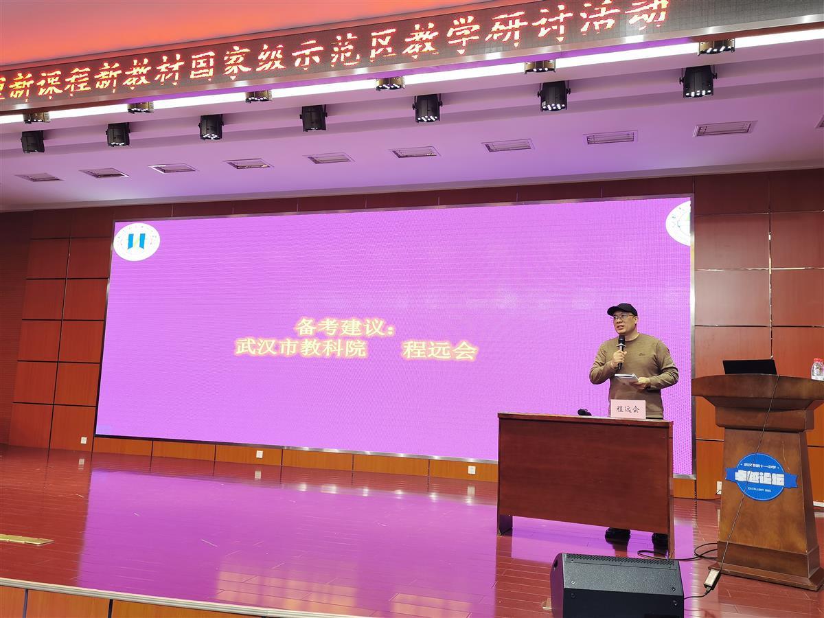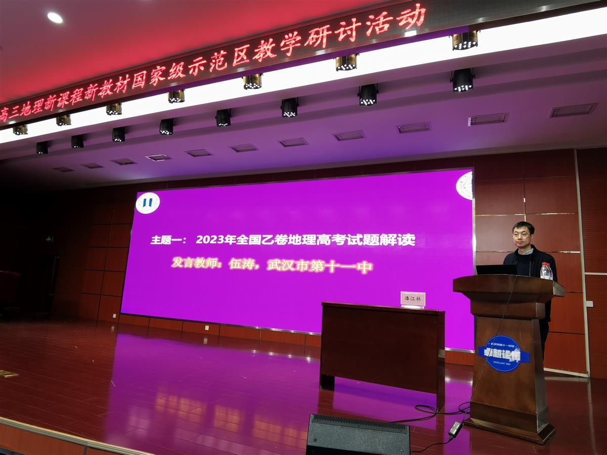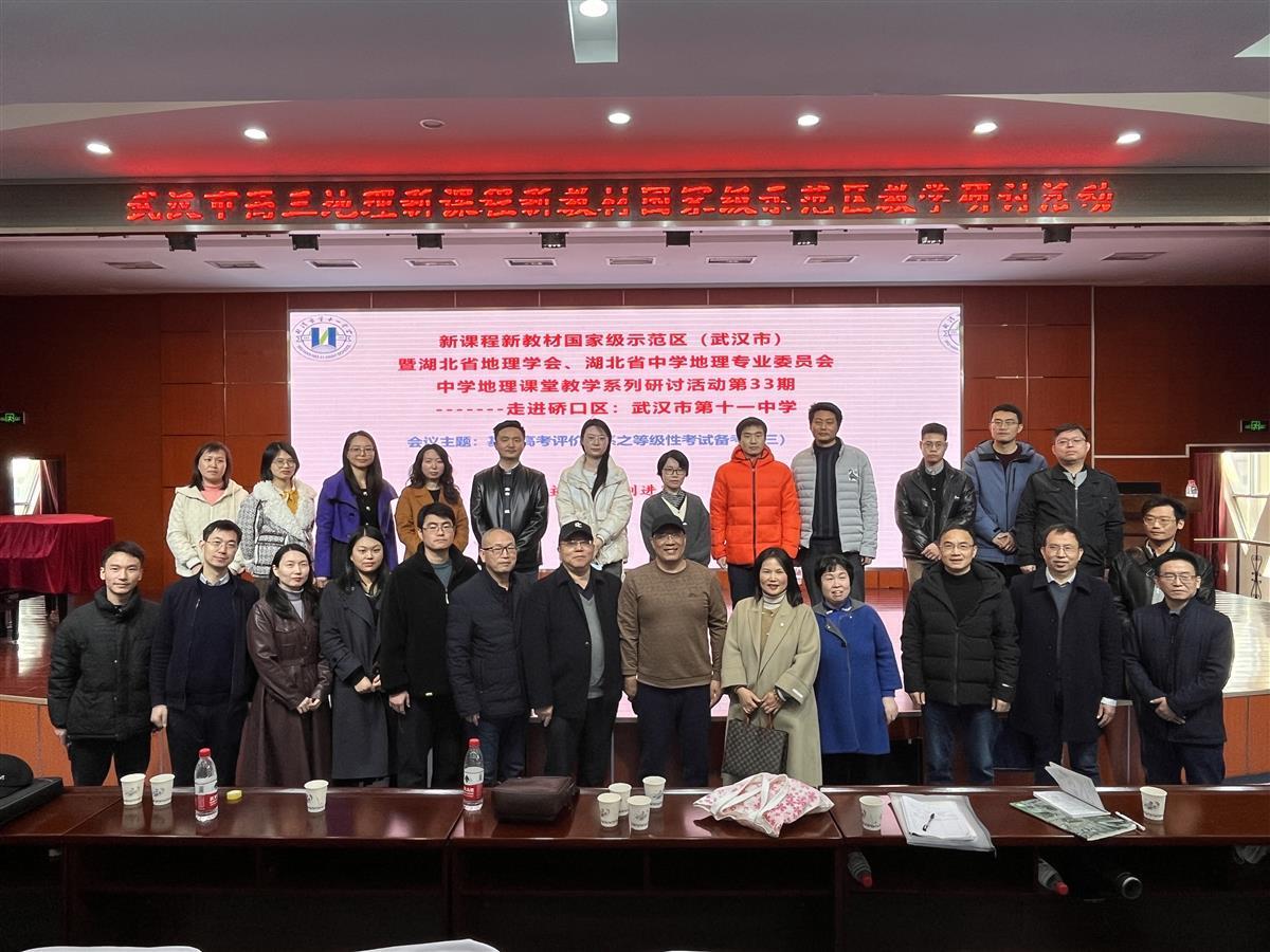 近日,普通高中新课程新教材国家示范区(武汉市)、湖北省地理学会、湖北省中学地理专业委员会中学地理课堂教学系列研讨活动第33期在武汉市第十一中学召开。本次活动主题是基于高考评价体系之等级性考试备考,主要以新人教版高中地理选择性必修2教材每一章节内容为例,对高考必备知识、关键能力和学科素养进行可操作性的复习样例展示。武汉市教科院中学地理教研员程远会老师及全市各区地理教研员、全市高三地理教师出席活动,会议由硚口区地理教研员刘进军老师主持。