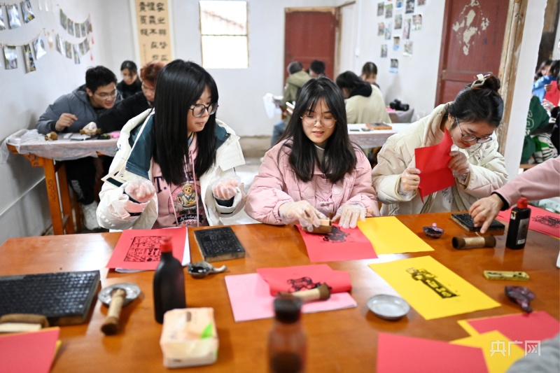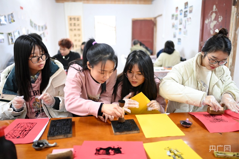 学生们体验非遗“雕版印刷”技艺(央广网发邓兴东摄)