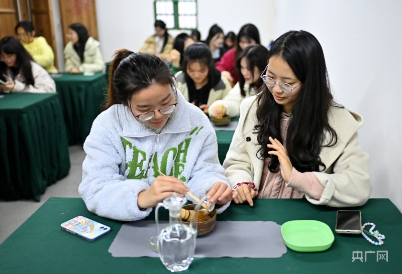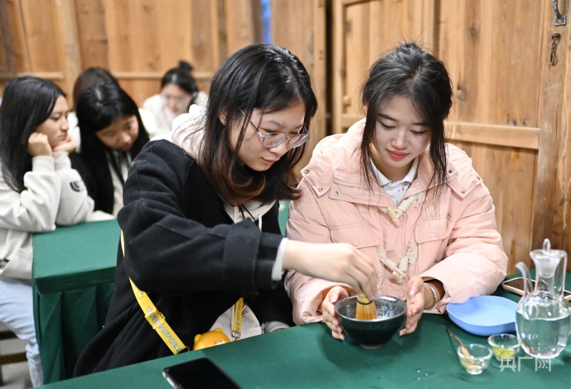 学生们体验非遗“宋代点茶”技艺(央广网发邓兴东摄)
