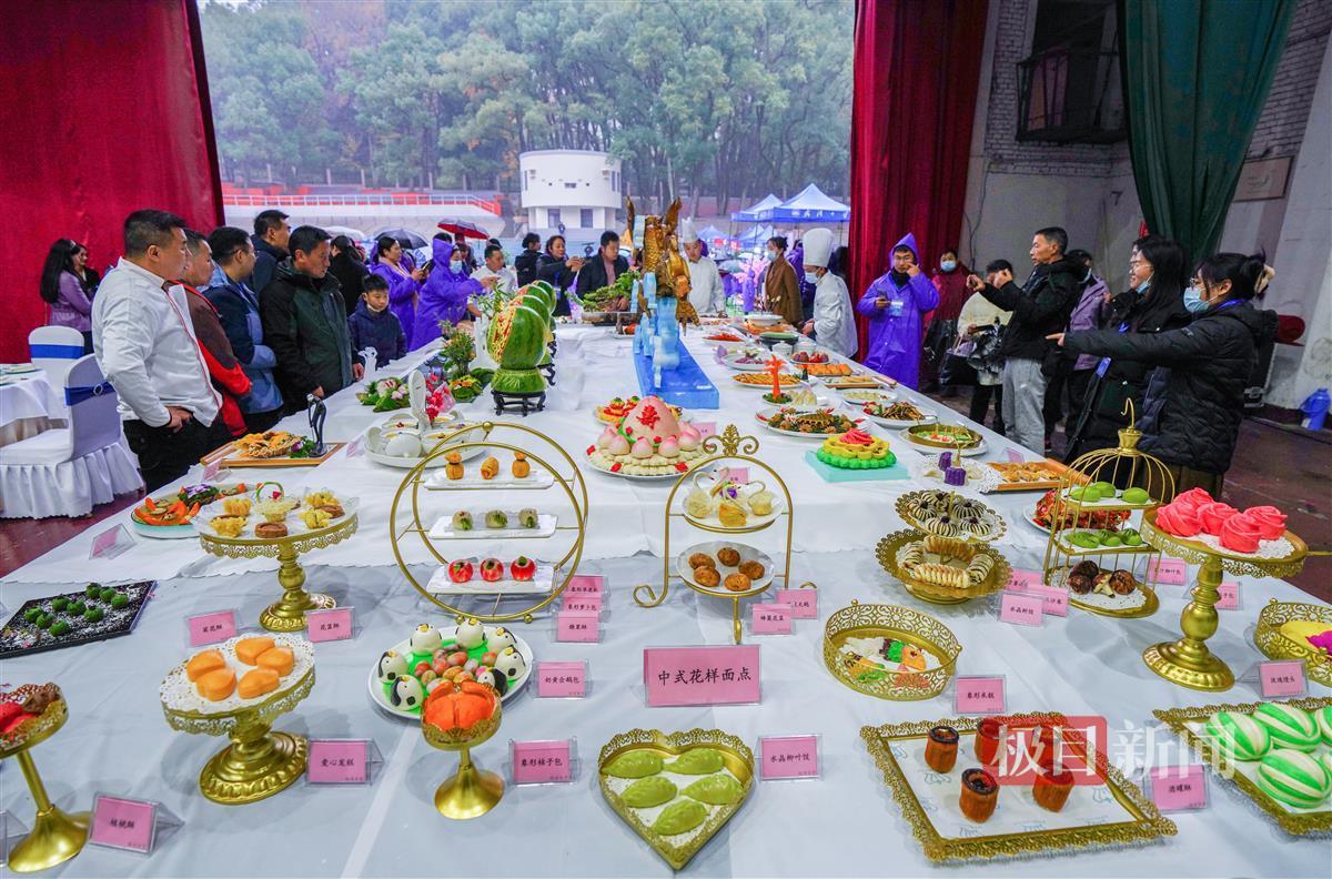 在白案展示摊位,造型逼真的寿桃、锦鲤等色彩鲜艳的面点十分吸引人,它们都出自“后勤服务岗位技术能手”董树敬之手。