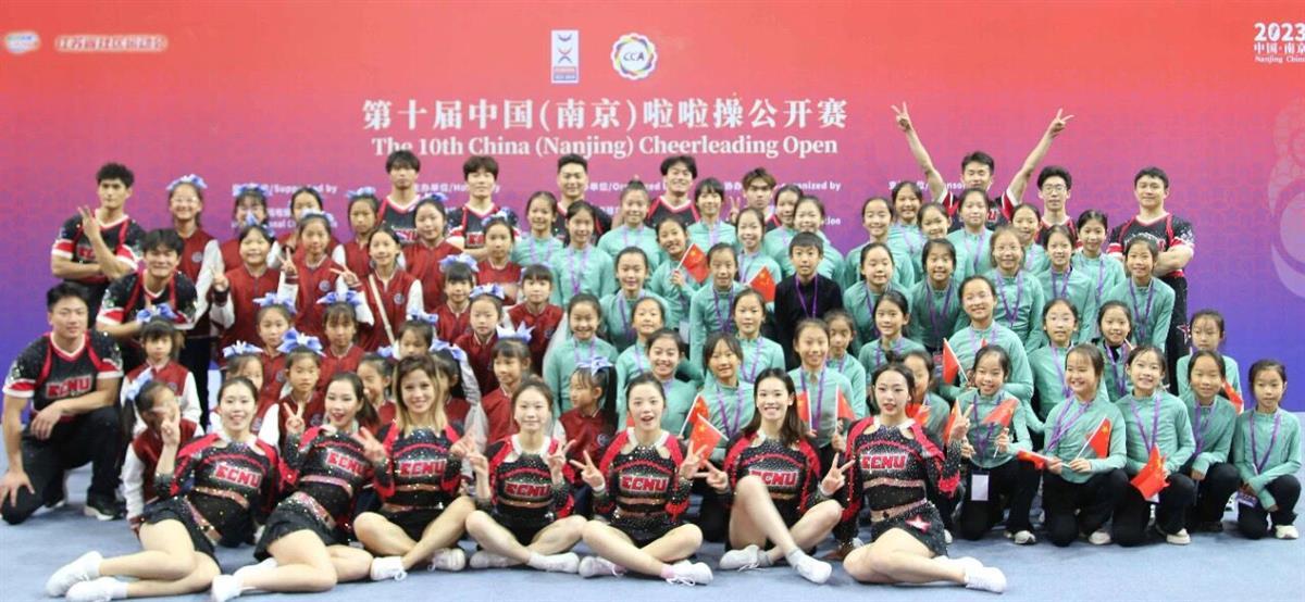 武汉校区(左)、海淀校区(右)与华东师范大学啦啦操队合影