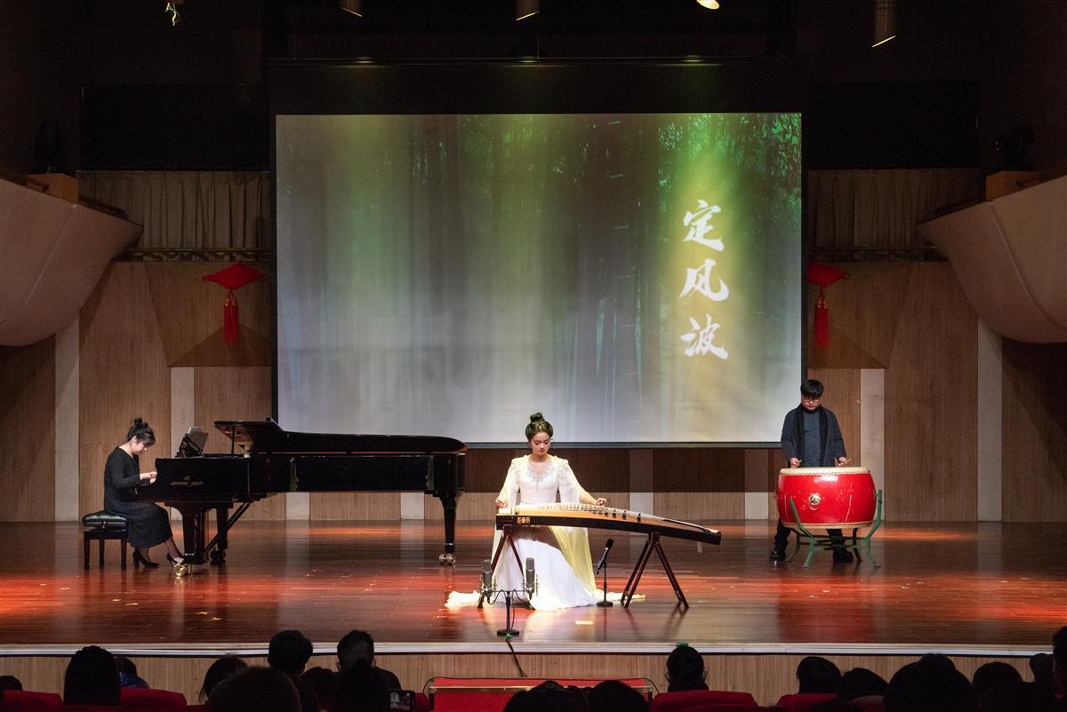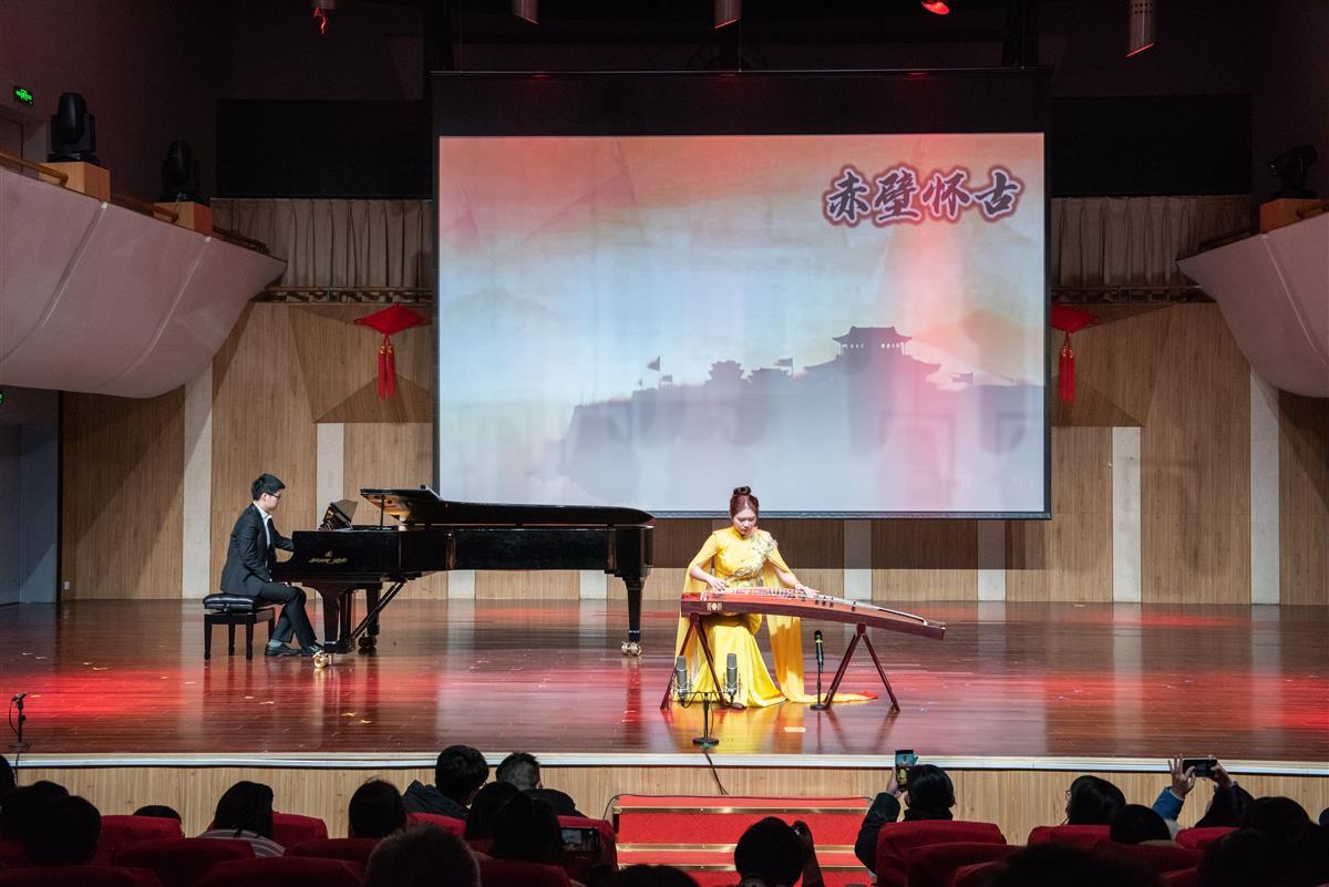 与音乐学院张文昭老师的朗诵配合,由常润杨演奏的《海之波澜》,在勾、抹、劈、挑中展示出大海波澜壮阔之景,观众仿佛置身于壮阔海边,身临其境感受海浪之激昂。
