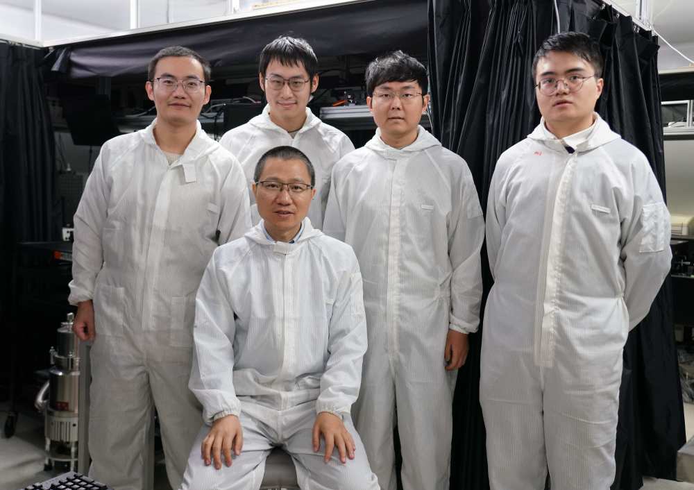研究团队成员在北京大学物理学院的实验室合影,前排坐者为刘开辉教授(12月15日摄)。新华社记者 魏梦佳 摄