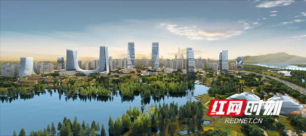 “省会新地标湘江未来城”大泽湖片区效果图。