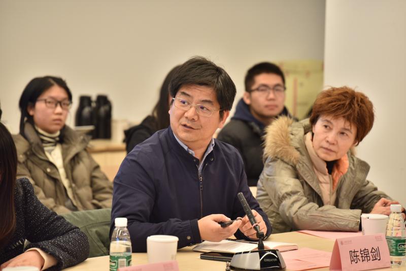王冲和陈锦剑分别代表设计学院和船建学院汇报2023年“黄金枝土木建筑奖学金、奖研金”评审情况,介绍获奖师生的学业和科研成绩。