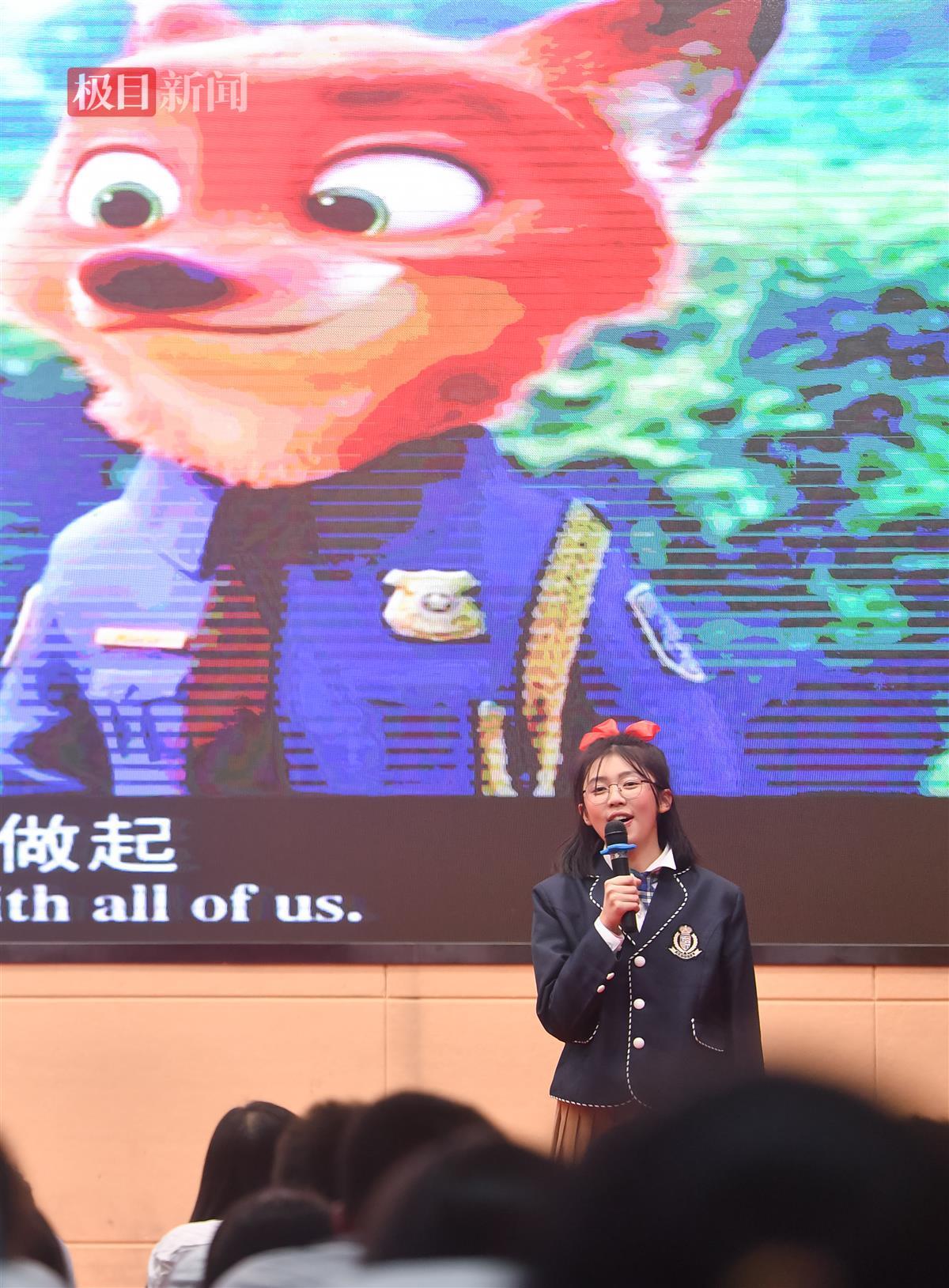 歌舞“Try everything”是动画片疯狂动物城的主题曲,熟悉的旋律瞬间点燃了孩子们的热情。《卖火柴的小女孩》等中外经典剧目轮番被同学们搬上舞台。配音秀《声临其境》里,优美的语音语调、自信流畅的表达、专业的表现力都让全体观众为之震撼,再次展现了该校学生极强的英语语言综合运用能力和高超的表演能力。用英文讲中国故事《花木兰》将整场活动推向高潮。