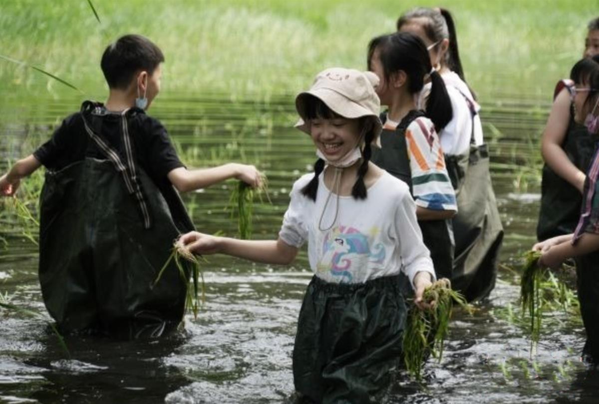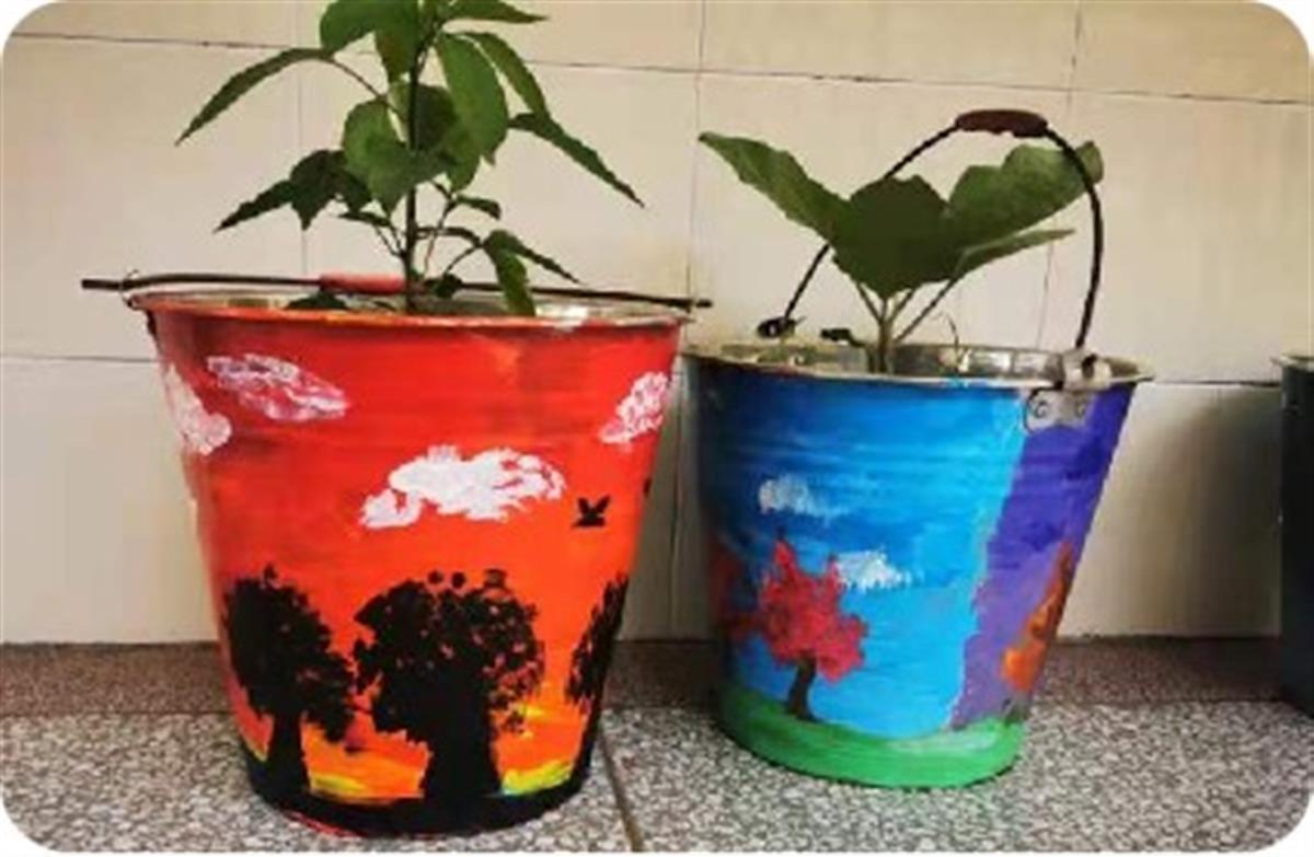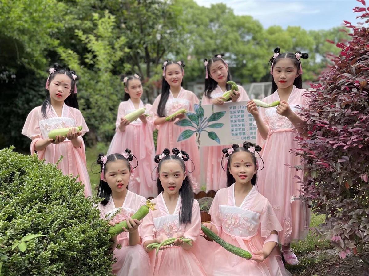 学校新建了“种植园”“诗经园”“竹里馆”“新琴台”“童梦森林”“生态农场”等劳动基地。“这些基地都没有大兴土木,而是就地取材。”该校相关负责人介绍,“种植园”中的种植桶,是食堂闲置的,老师带领孩子们变废为宝,在桶上绘制出了精美图案,并学习钻眼打孔、土壤配比的技术,发挥种植桶的最大功效;“诗经园”里的植物源自《诗经》总集,学生边栽种边吟诵《诗经》,配上陶笛的伴奏,古人“逐丰盛水草而居”的诗意荡漾开来。