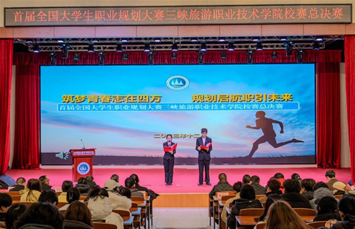 12月21日下午,首届全国大学生职业规划大赛三峡旅游职业技术学院校赛总决赛在该校大学生活动中心举行。学校党委副书记、副校长朱昌林,党委副书记熊杰,党委委员、副校长张耀武,副校长杨德芹,党委委员、纪委书记王长勇,党委委员、副校长张蕾出席,500余名师生代表参加。