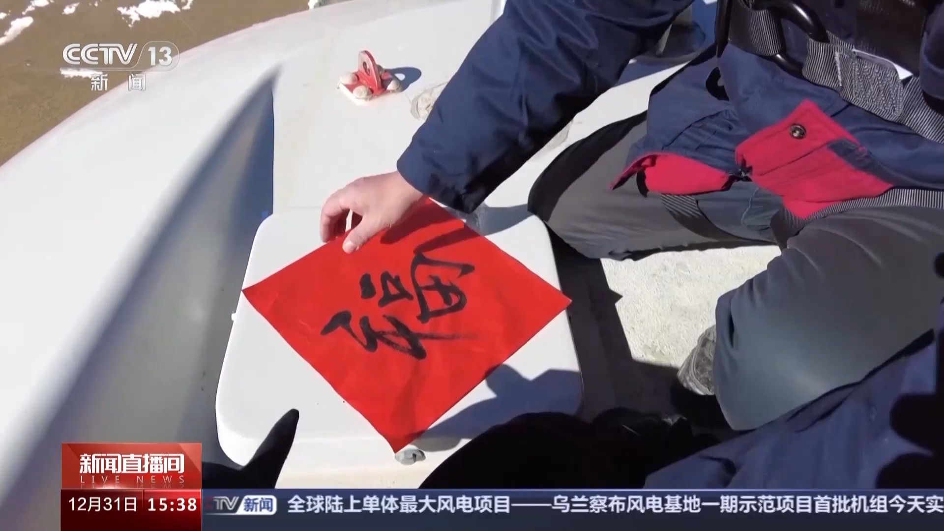 总台央视记者 张丛婧:这可能是您看到的最高海拔的“福”字了,我们一起期待风电场顺利投产,也在这里祝大家新年快乐!