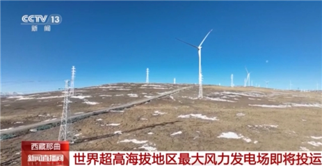 在青藏高原,全球海拔最高的风机,克服高原空气稀薄的困难,持续稳定送电。