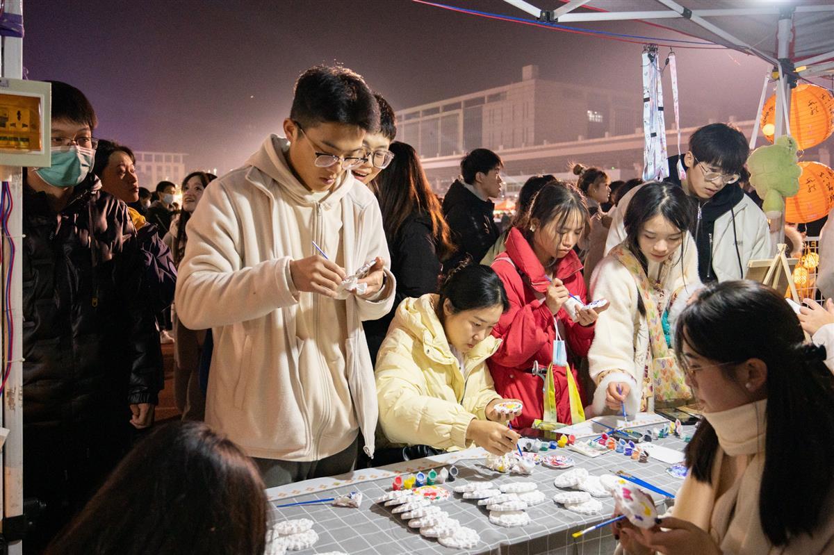 香气氤氲下,美食区师生的热情驱散了冬日的严寒。云南玫瑰饼、四川钵钵鸡、天津煎饼果子、河北驴肉火烧、内蒙古羊肉烧卖、山西特色油茶……天南海北,道道美食飘出“家乡味”;生科院狮山精酿、植科院狮山菜羹、食科院热红酒、水产院“鱼鱼饺”……百花齐放,各个学院都献上“拿手菜”。