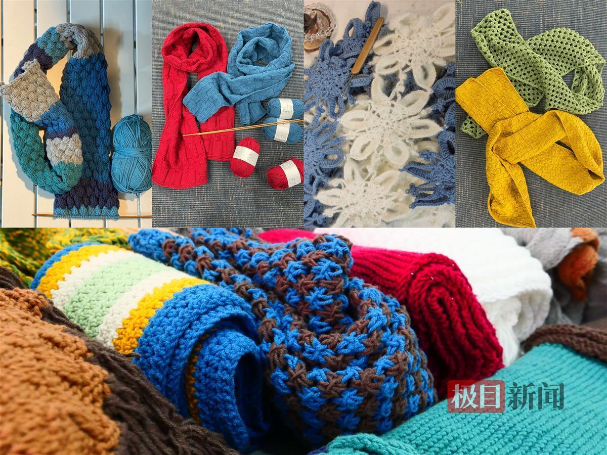 这些围巾是湖北美术学院中国画学院师生志愿者在1个多月的时间里织出来的。“为赶在元旦前为学校对口社区的老人们送上关爱,我们提前组织开展了‘艺馨向党’——‘学编织、暖民心’党团创建活动。这段时间,师生志愿者都在繁忙的学习工作之余加班熬夜编织围巾。”学生志愿者张萌萌说。