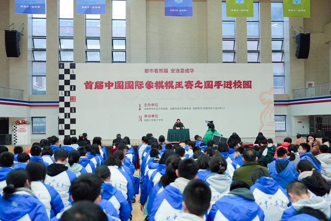 首届中国国际象棋棋王赛,将于1月6日在成都揭幕。作为本届赛事的推广活动之一,中国国际象棋协会主席、国际特级大师叶江川带领世界冠军许翔宇、李荻以及名将赵元赫、鲍麒麟等棋手来到成都七中英才学校,与广大师生互动交流。