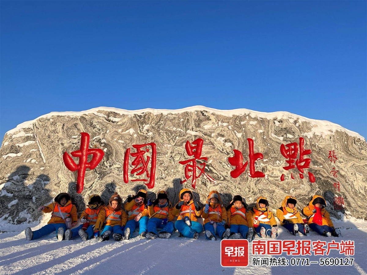 ▲广西“小砂糖橘”在中国最北点合影。受访者供图