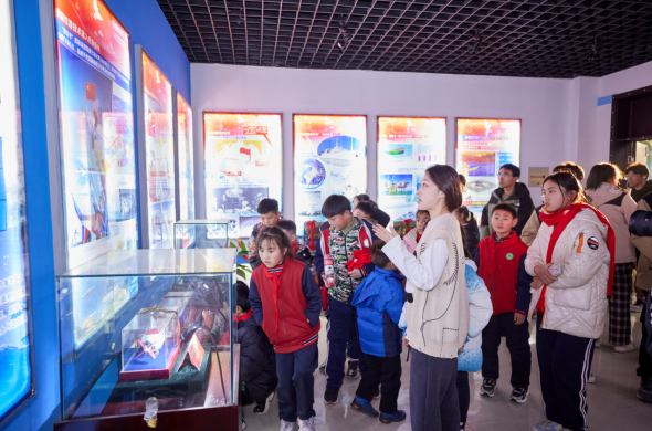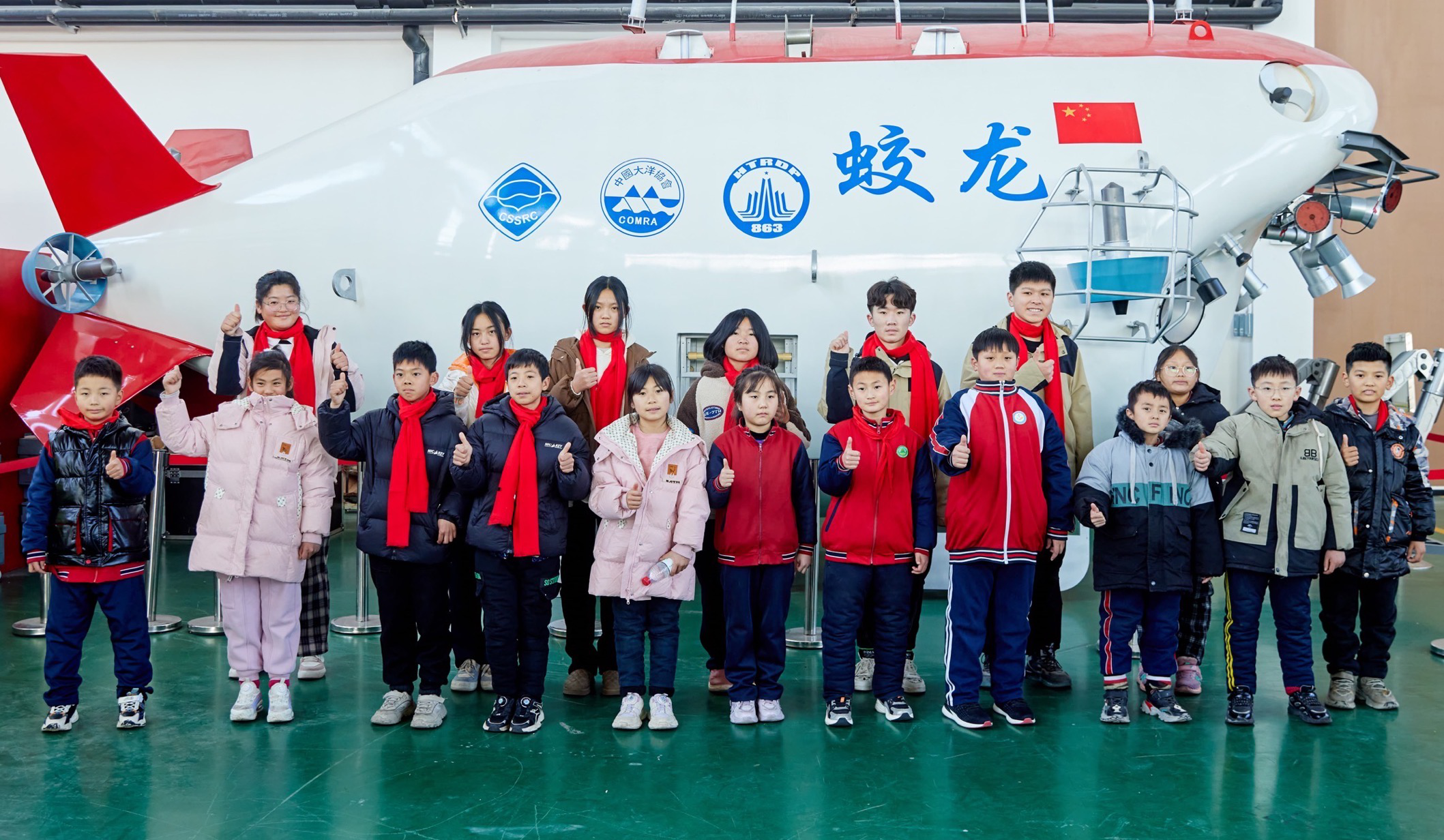 研学活动第二站来到国家深海基地管理中心,在这里孩子们见到了“蛟龙”号深海载人潜艇的1:1模型,聆听工作人员讲解深海自然及科考知识。在好奇的目光和阵阵惊叹声中,孩子们兴奋地遨游在神秘又富饶的海底世界。