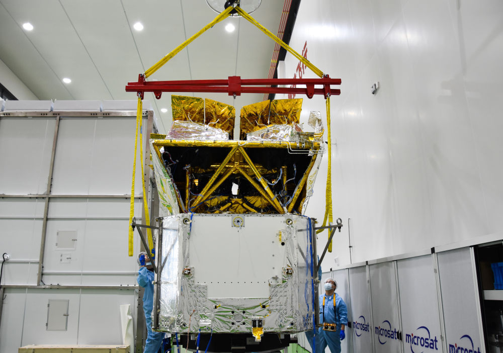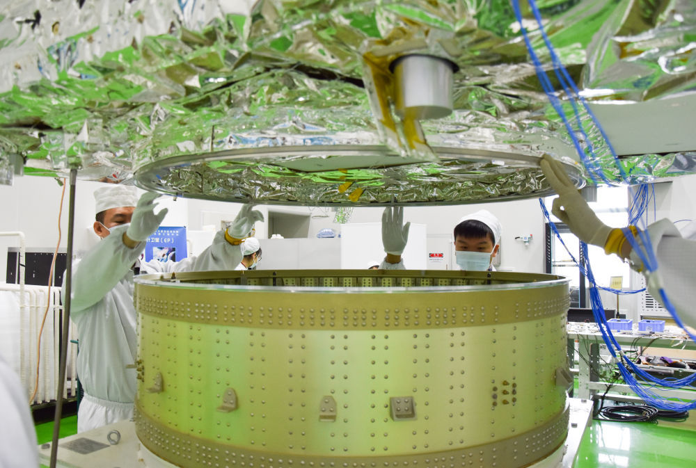 2023年9月11日,在中国科学院微小卫星创新研究院,爱因斯坦探针卫星正在进行力学试验。新华社发(中国科学院微小卫星创新研究院提供)