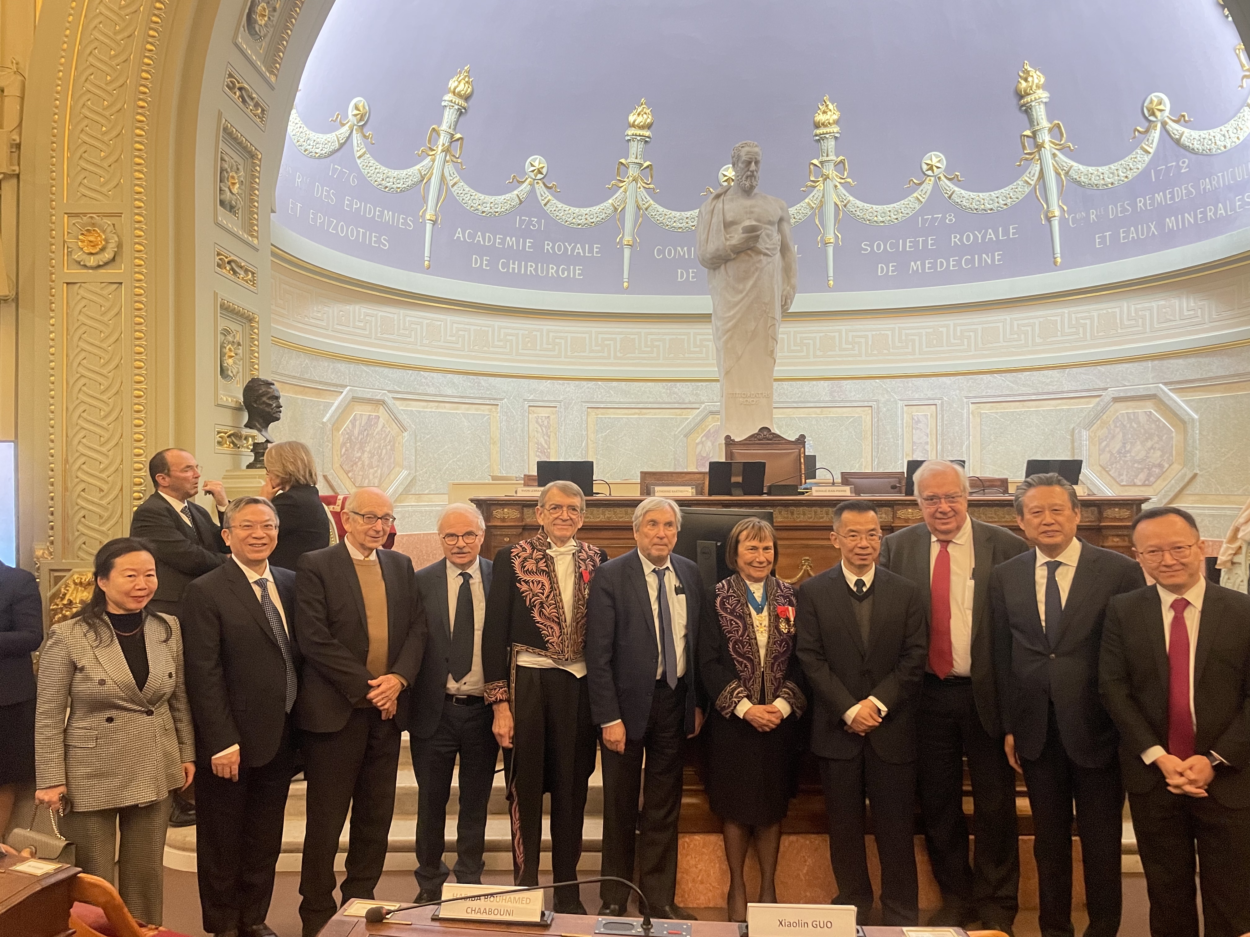 黄晓军院士(左2)参加法国国家医学科学院新晋院士授证仪式。