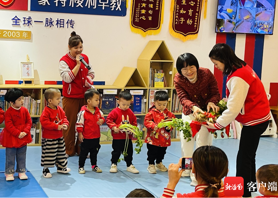 新海南客户端、南海网1月25日消息(记者黄婷实习生冯兰茜)1月25日,海口一托育机构全勤奖是每人领到一捆大芹菜。宝宝抱着半人高的芹菜跑向家长,可爱的动作和表情萌化网友。