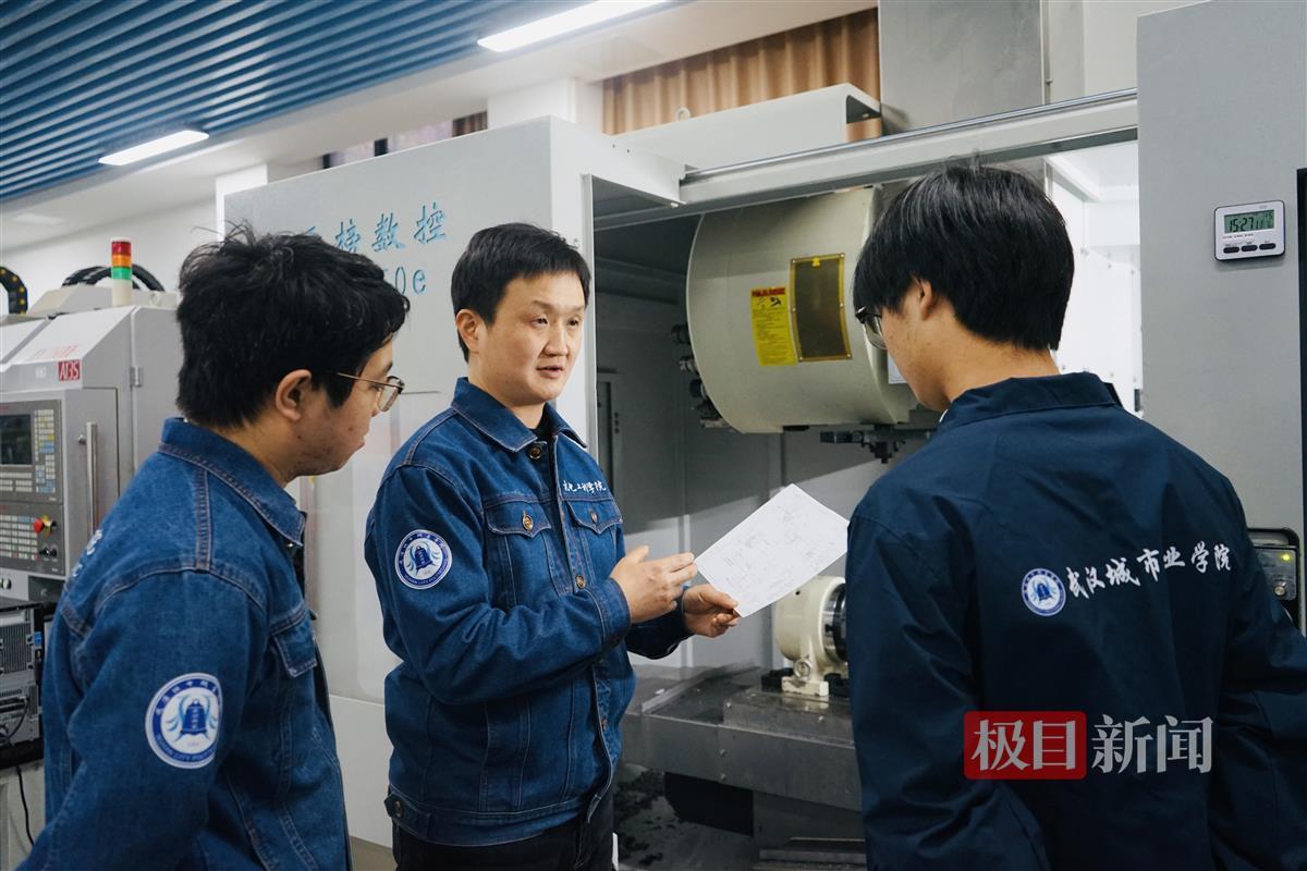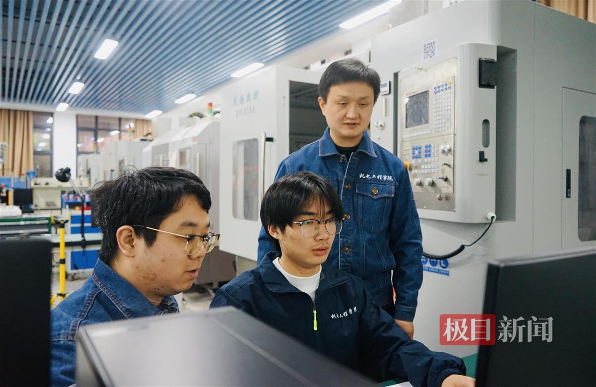 在实训室,记者还看到一位“老朋友”!在2023年“荆楚好老师群星计划”报道中,极目新闻推发了报道《大国工匠背后的“工匠”,“良匠之师”禹诚打造数控“梦之队”》,里面提到:2020级毕业生张杨,从中职升到高职,对模具设计和数控加工专业近乎痴迷。大一时,他获得全国职业院校技能大赛模具数字化设计与制造工艺一等奖,每天可以对着电脑或机床十多个小时。禹诚当时感慨:“像这样的小伙,我真的是又心疼又敬佩,这种工匠精神,我认为我们国家非常需要。”