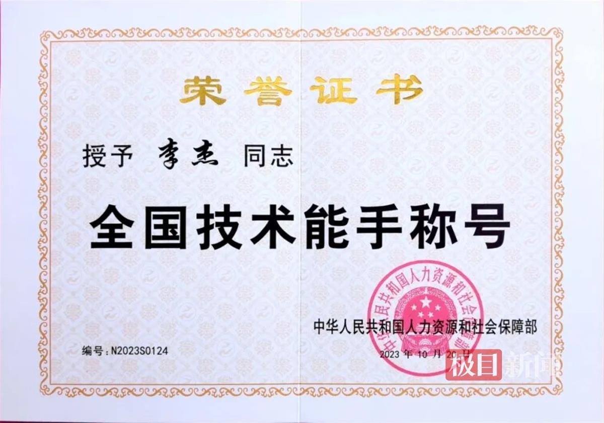 李杰荣获“全国技术能手”称号