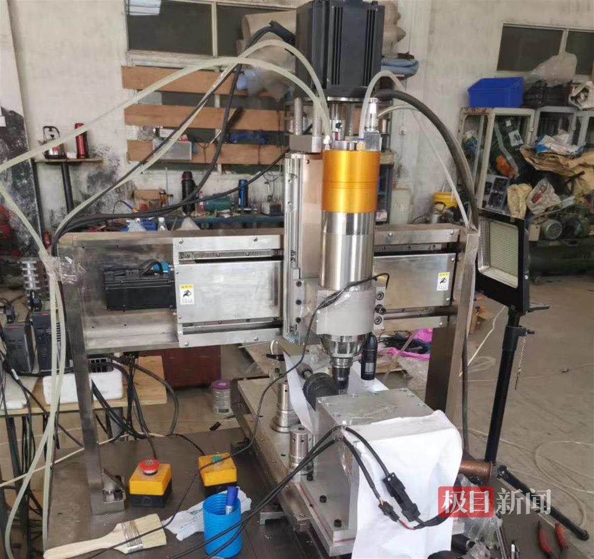 在实训室,极目新闻记者看到这台用于训练的口罩机熔接齿模部件,主要对口罩边缘进行熔接与裁切。李杰老师介绍,在疫情防控期间,口罩紧缺,口罩机的部件维修更是困难,熔接齿模加工时间长,环节多,硬度、精度要求都很高,且价格昂贵,“当时为了解决口罩机这一核心部件的维修问题,尝试用精密数控进行仿形编程切削,整个过程堪比毫厘之间的‘微雕’。这样的突击攻关,为大家积累了数控经验,也成了挑战困难的见证。”