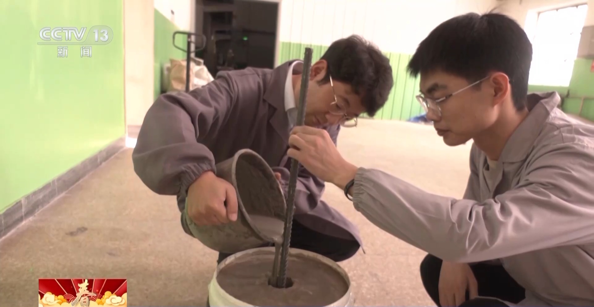 中冶建研院特材公司高级总工程师 宋涛文:这个材料是我们前期经过无数次实验确定的一个配比,这个材料配比可以确保它在南极负温的环境下,24小时也能达到30兆帕强度。