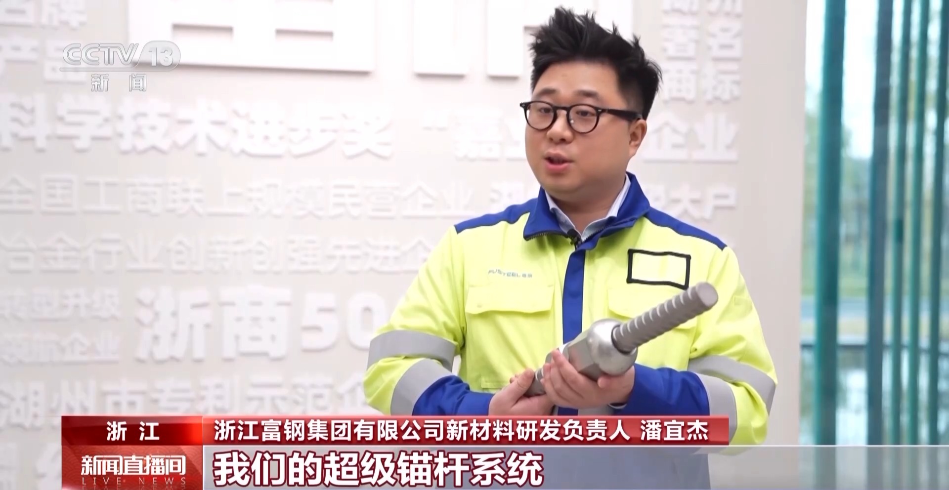 浙江富钢集团有限公司新材料研发负责人 潘宜杰:我们的超级锚杆系统可以承受零下40℃,190焦耳的冲击功。具有较高的耐点蚀当量(耐腐蚀性能),大约是常规碳钢锚杆耐蚀性能的60倍。能够满足严苛环境下的耐久服役要求和力学表现。