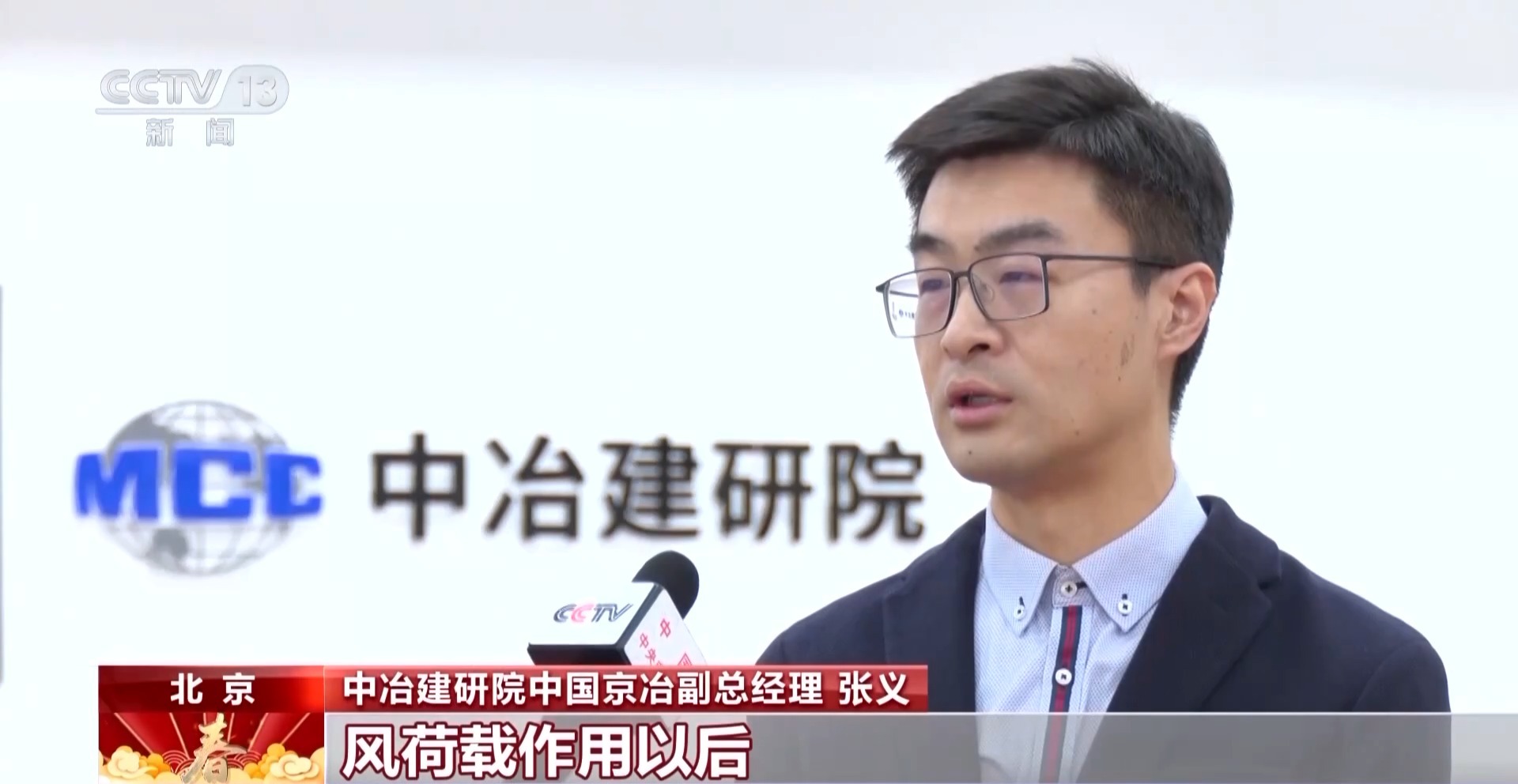 中冶建研院中国京冶副总经理 张义:风荷载作用以后,它会给这个外形上造成很大的震动。所以要采用一种锚固技术,就好比帐篷一样,要固定在这个大地上。