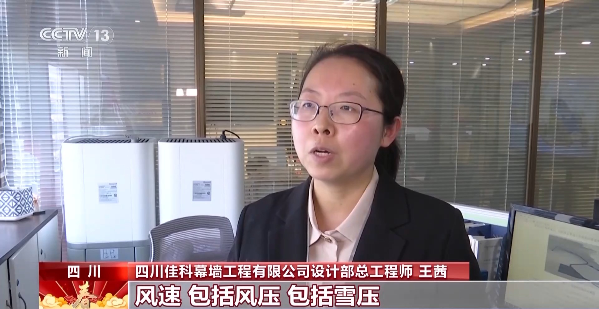 四川佳科幕墙工程有限公司设计部总工程师 王茜:风速,包括风压、雪压都是经过了前期很多的实验来得到的。面板的计算我们是做了两个方面的计算,一个是根据规范上的一些经验公式来做的计算。另外,我们也在有限元的软件上经过了有限元的模拟,来双向论证我们计算的结果可靠性 。(记者李洁 宋云研 李卉)
