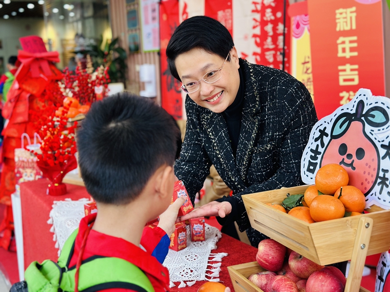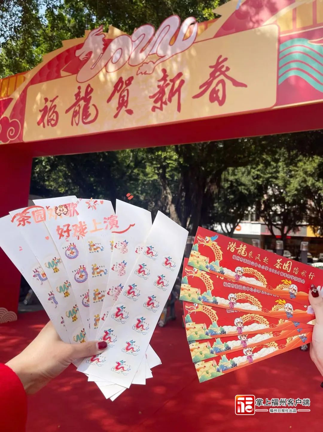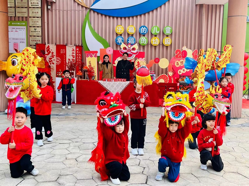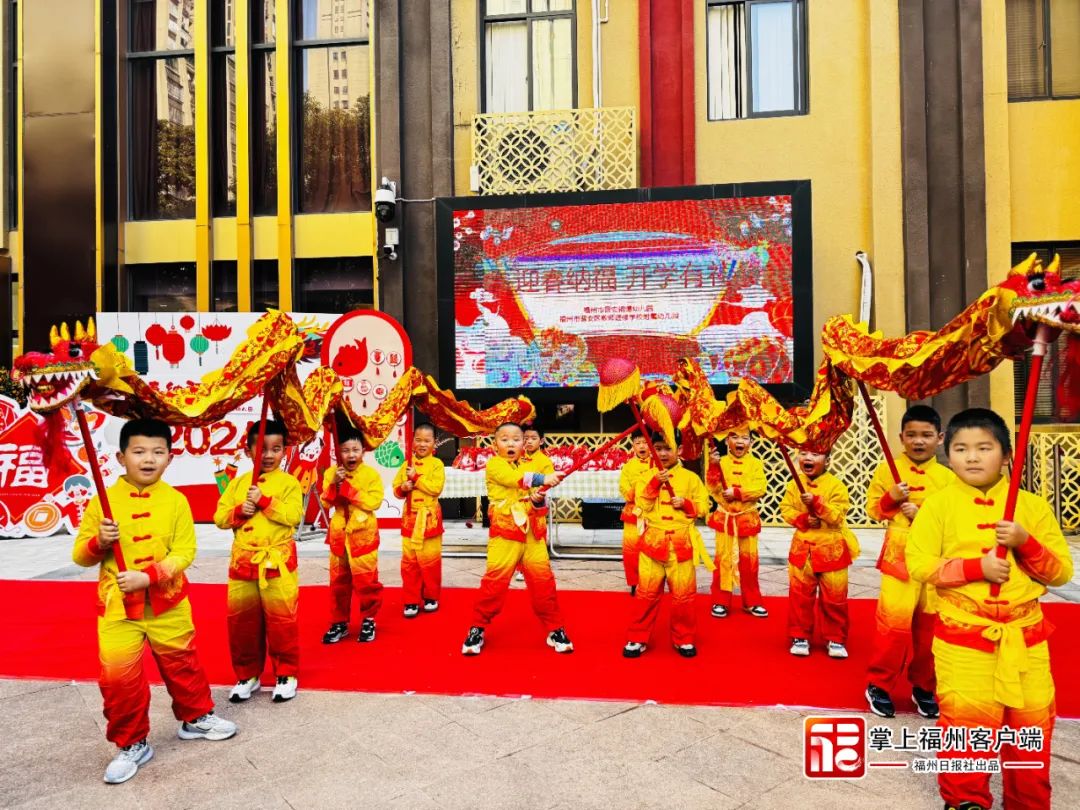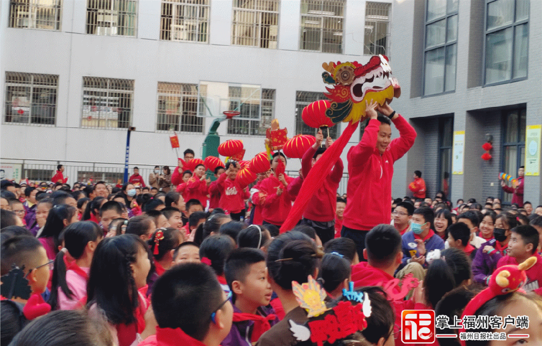 送福袋、盖福印、戴福帽……走进福州市晋安榕博幼儿园,满眼都是温馨的场景布置,孩子们舞起了“龙”。