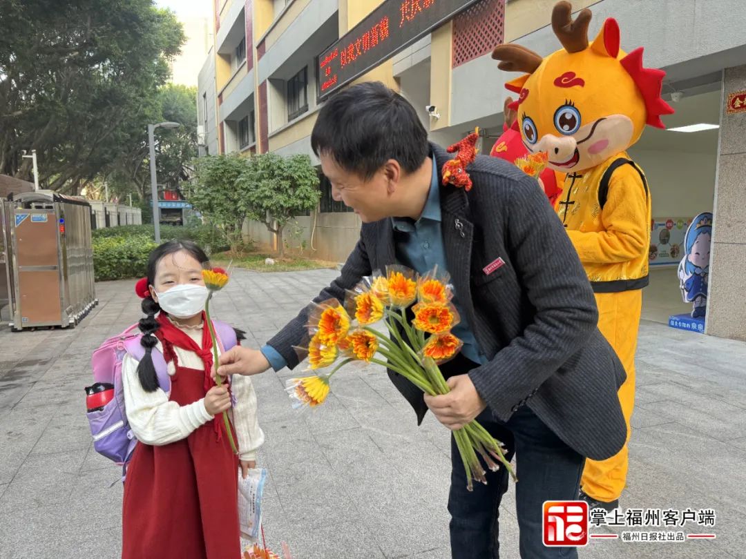 福州市温泉小学的孩子们变装“小福娃”和小龙人们喜气洋洋迎接新学期,孩子们还收到了来自学校的新年神秘礼物——一朵鲜花!希望每一个温雅学子像花儿一样茁壮成长,开出属于自己的美好明天。