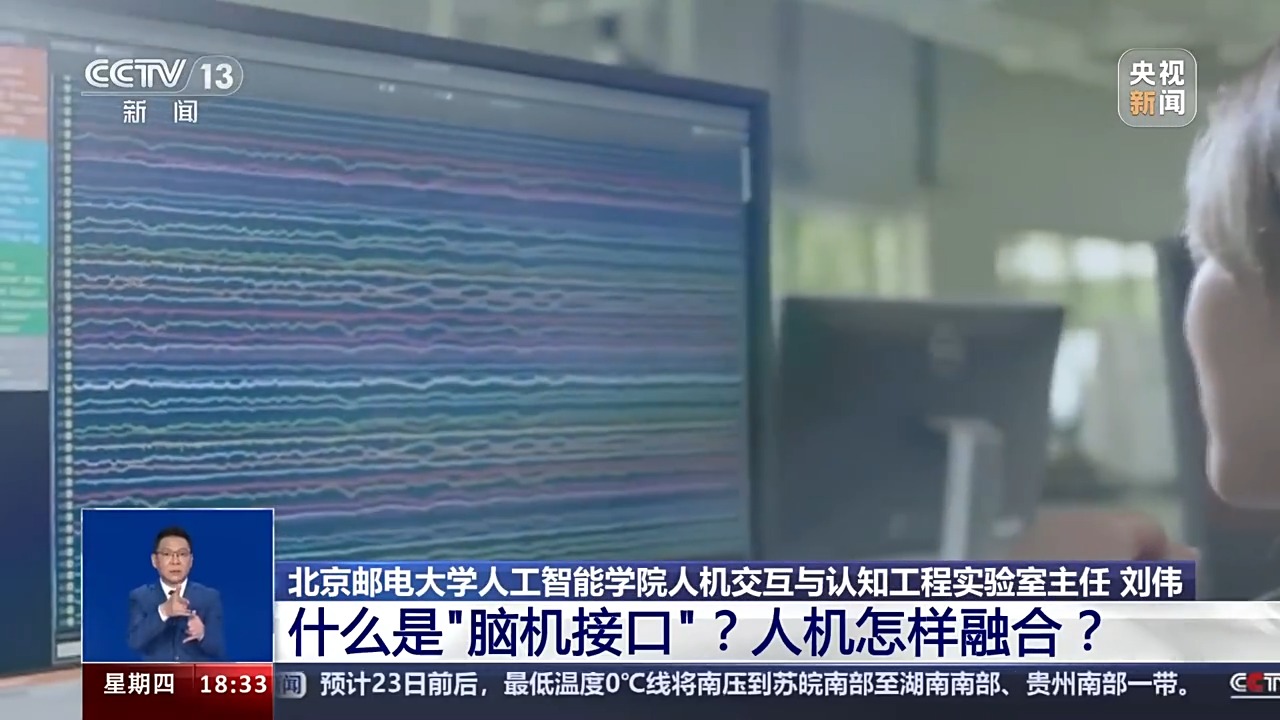 北京邮电大学人工智能学院人机交互与认知工程实验室主任 刘伟:脑机交互主要是通过监测大脑的电信号活动和深化信号活动来实现交互,它能够捕捉运动皮层的信号,可以将大脑的一些活动的生化、电信号转化为可控的指令,让残疾人或者脑部疾病的患者能够恢复一定的运动能力,获得一些简单的交互能力。
