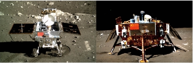 △“嫦娥三号”月面巡视器和着陆互拍图
