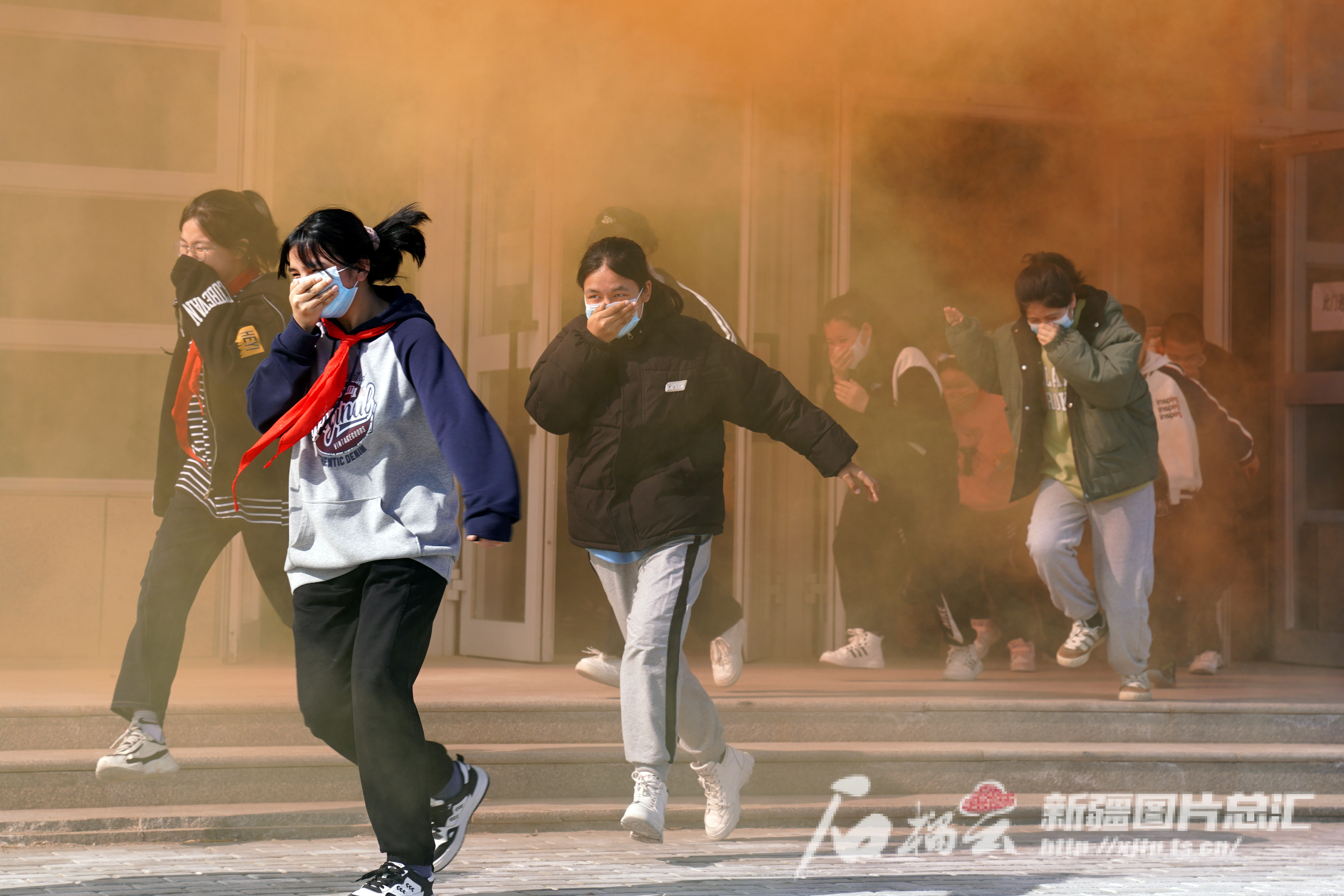 2月22日,克拉玛依市消防救援支队走进学校,组织开展师生消防疏散演练。王颖楠摄