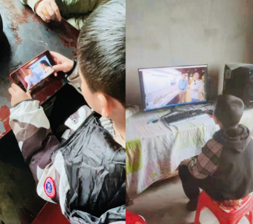 项目校学生观看直播课照片。