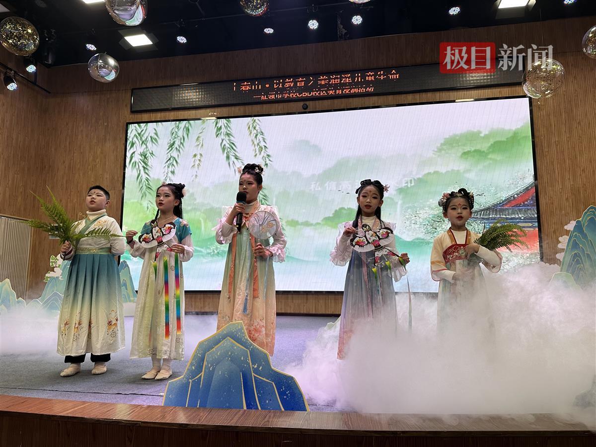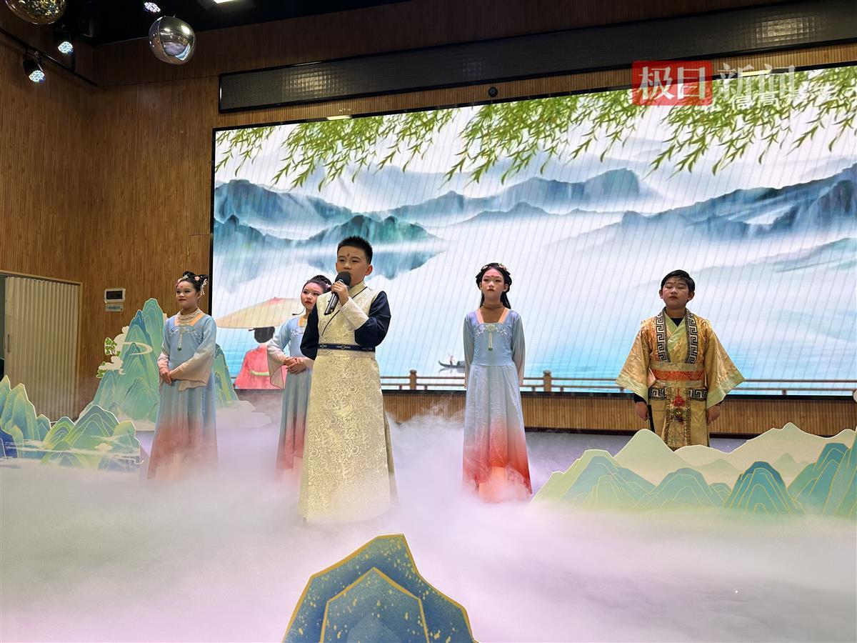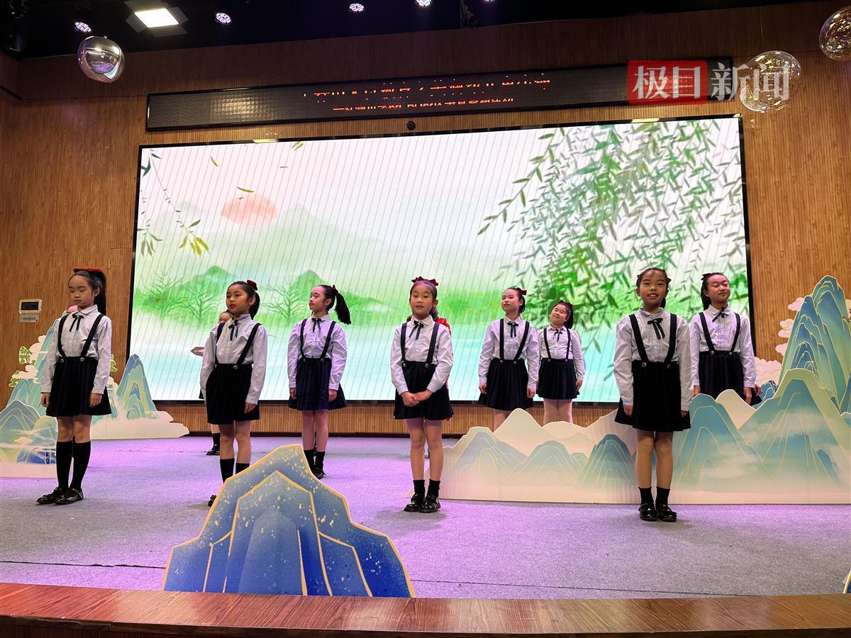 “同学们,你知道吗,一曲《上春山》融合了15首诗。”在四年级(2)班的吟诵展演上,语文老师段翔红带领学生们通过诵读等形式,表演了《上春山》飞花令。