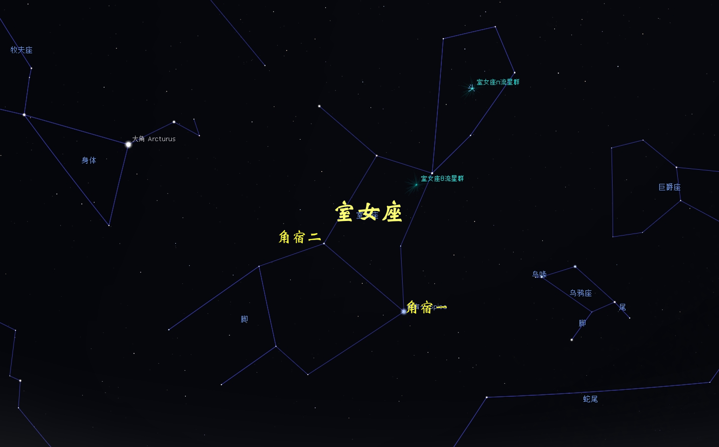 苍龙七宿并不是只有七颗星,而是由众多恒星组成,它们大致对应着现代88星座中的室女座、天秤座、天蝎座和人马座的部分恒星。其中,角宿由角宿一和角宿二组成,就像是“苍龙”的两个犄角。