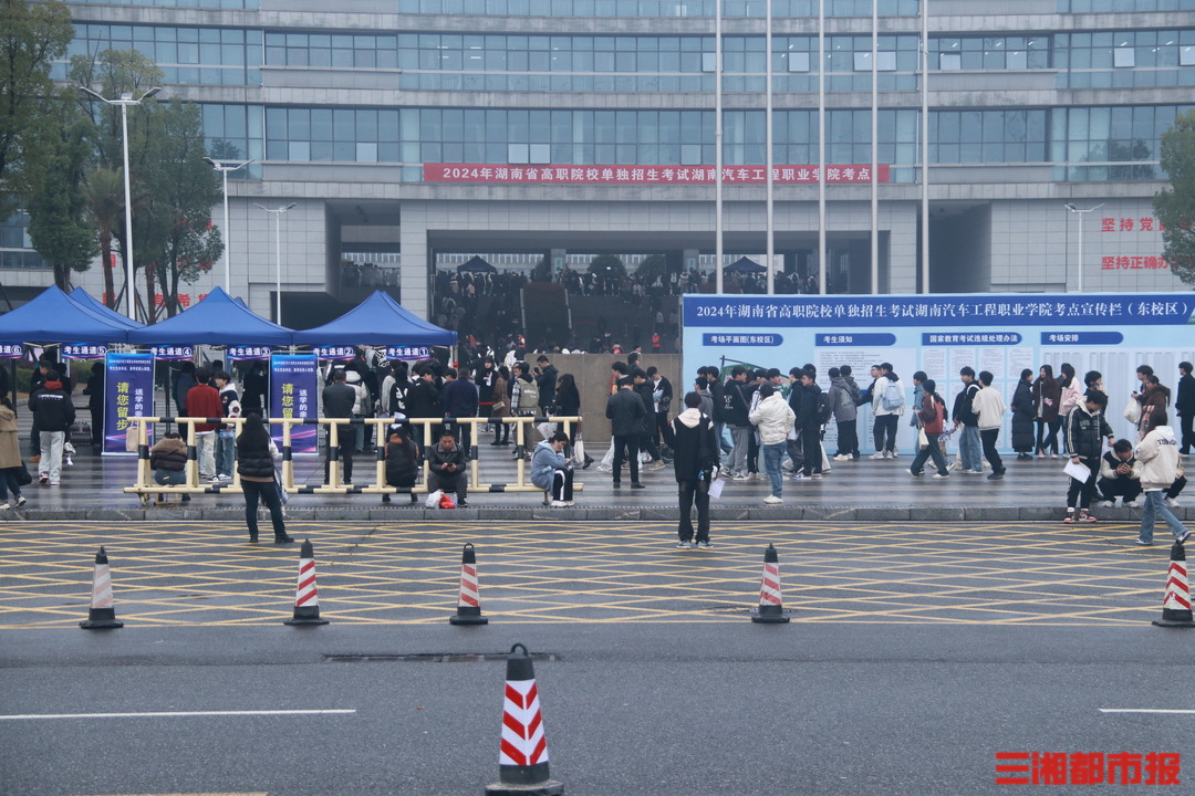 许明强告诉记者,考完后又是刚下完雨,地上处处是积水,考生一条腿行走特别不方便,“孩子们有的从很远的地方过来考试,很不容易,我们帮不了什么忙,就尽自己的能力为他们护航,让他们顺利考试,平安回家。”据悉,在长沙职院,本次单招考试有近400名教职工和300余名学生志愿者参与考务工作,他们都在用实际行动诠释和践行着雷锋精神。