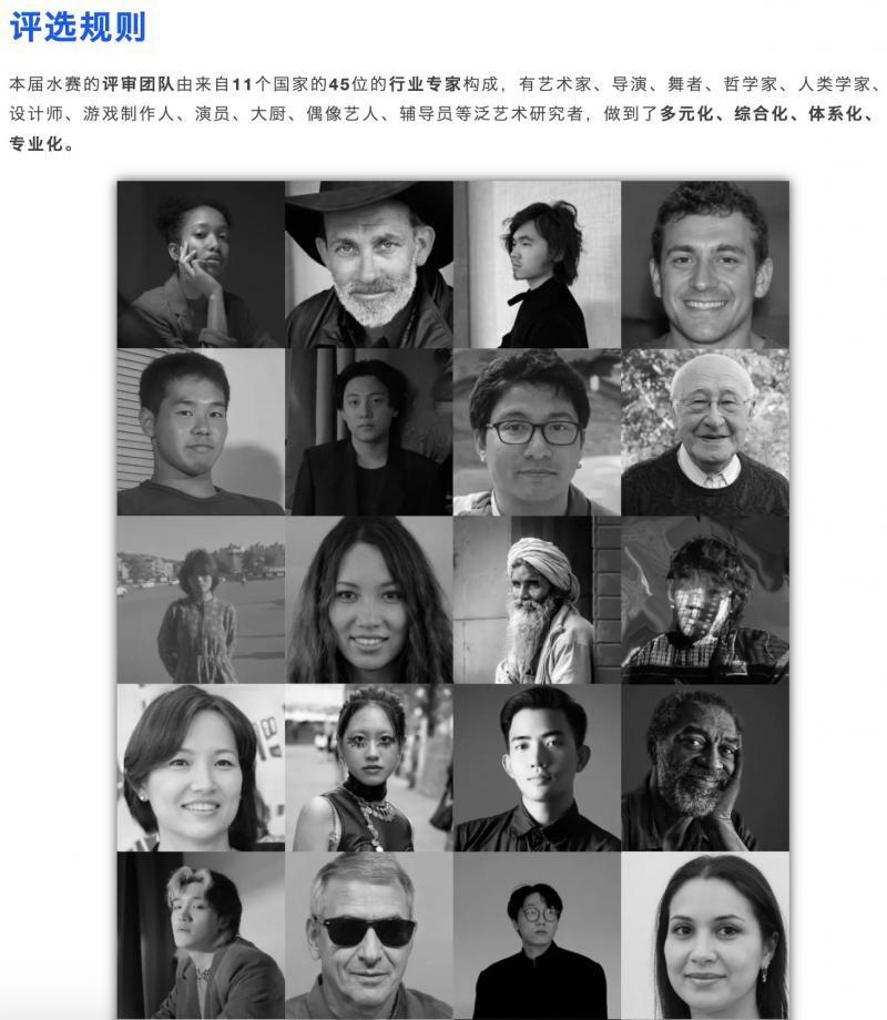 从宣传内容上看,这次“水赛杯”的评审团队由来自11个国家的45位行业专家构成,包括艺术家、导演、舞者、哲学家、人类学家、设计师、游戏制作人……