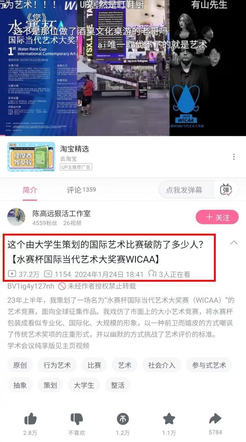 为戏谑这一现象,不久前,上海某艺术类院校的大四学生、00后的陈高远举办了一场“水赛杯国际当代艺术大奖赛”(以下简称“水赛杯”)。