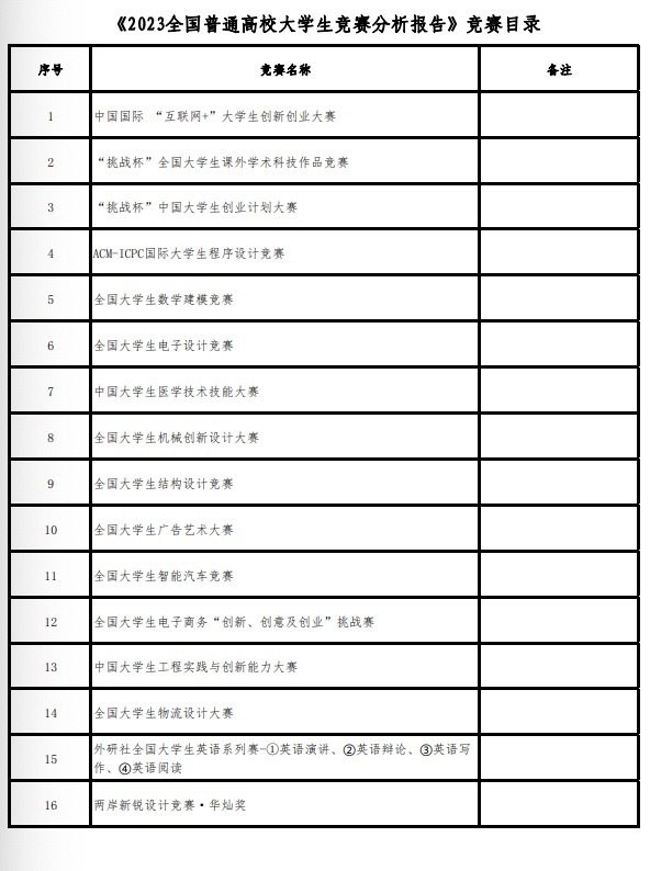 据悉,中国高等教育学会每年都发布高校竞赛目录。例如去年发布的《2023全国普通高校大学生竞赛分析报告》当中,涵盖了大大小小84个竞赛项目。