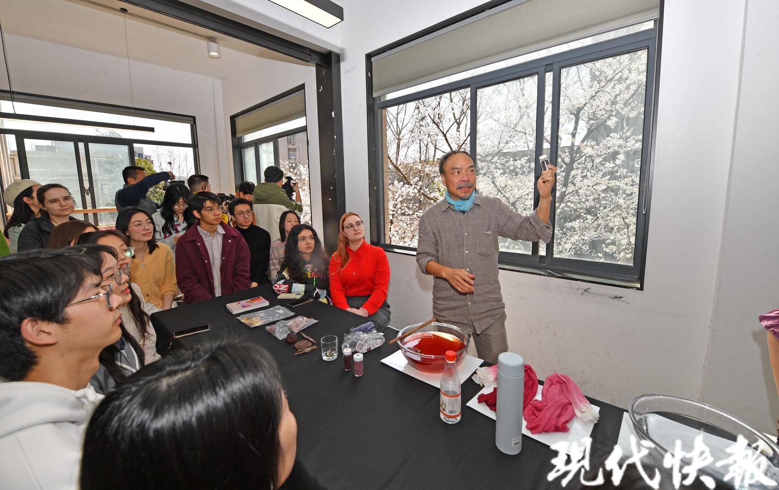 窗外的樱花如云似霞,随春风摇曳;窗内的学子潜心创作,染就绝美中国色。3月22日,一堂赏心悦目的公开课在东南大学超出圈的“樱花教室”精彩上演,中国台湾自然染手工艺人、云林科技大学名誉教授曾启雄,为东大师生带来一堂触摸传统色彩、追溯自然之美的文化课。